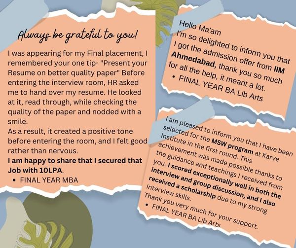 "Snehal with her detailed discussion on minutest of sections helped us in enhancing our readiness for a launch pad to our corporate career. Mock sessions have been very insightful and helpful."